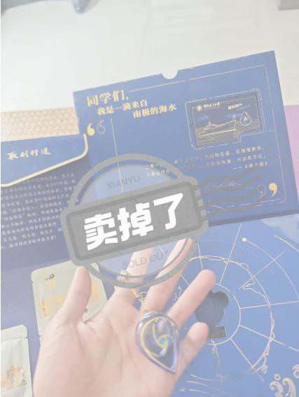 “蓝色水晶材质,金色边框典雅大方。成色完好。吊坠配有精美礼盒包装,内含南极海水纪念卡片。送礼自用都很合适。”闲鱼App上,一条中国海洋大学录取通知书所附赠的南极海水吊坠前不久刚刚被人拍下,链接显示为“已售”状态,售价为1299元。
